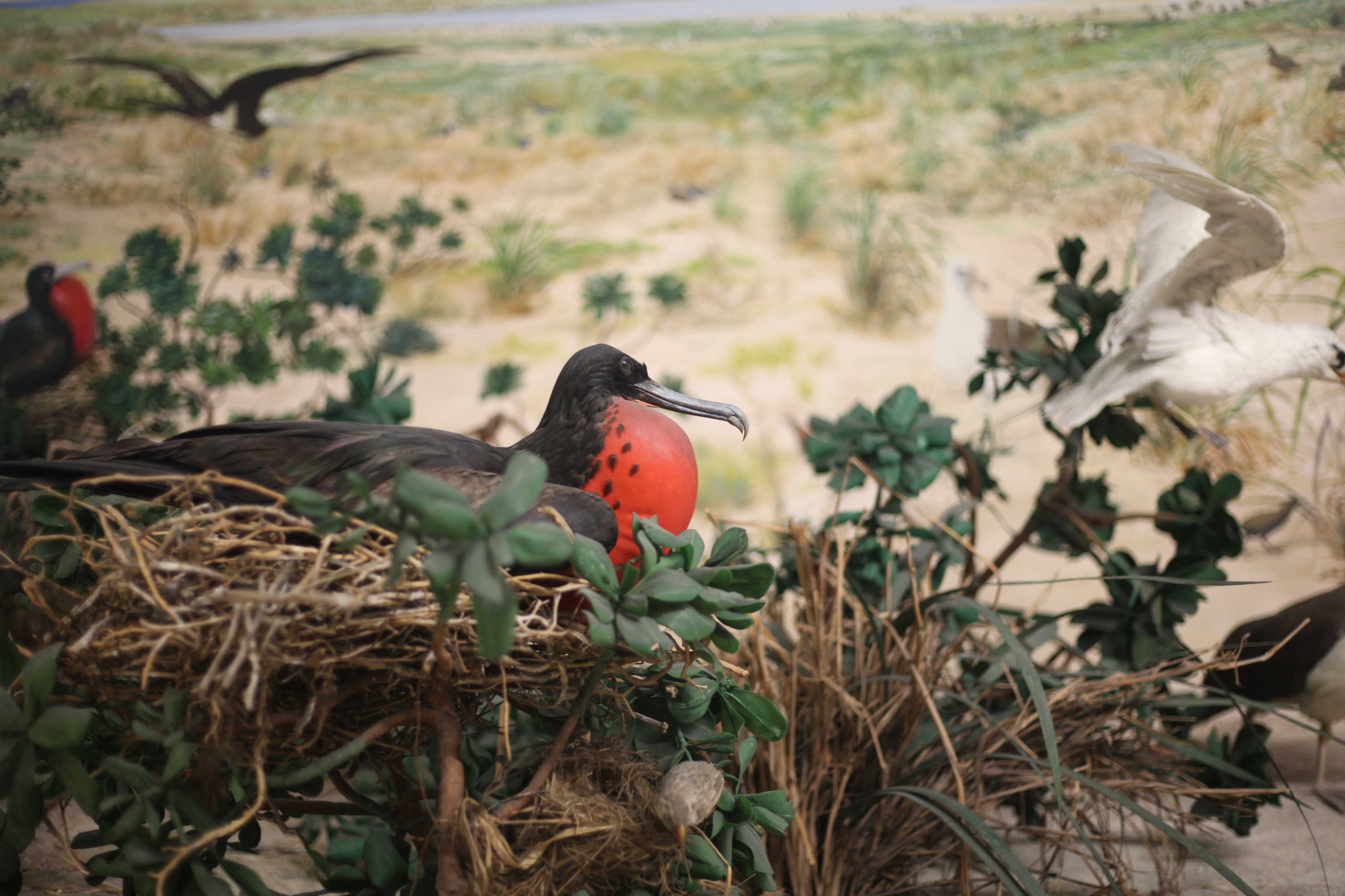 Created in 1914, the Laysan Island Cyclorama immerses visitors in the environment of Laysan, an atoll in the Northwest Hawaiian Islands known for its extraordinary bird populations. Combining art, science, and conservation, the exhibition features a 138-foot painted mural, over 100 mounted birds representing 24 species (including 3 now extinct species), and a richly detailed foreground of nests, eggs, and native flora. It was one of the first 360-degree immersive exhibits (panorama or cyclorama) dedicated to a singular ecosystem and remains unique in the world today.